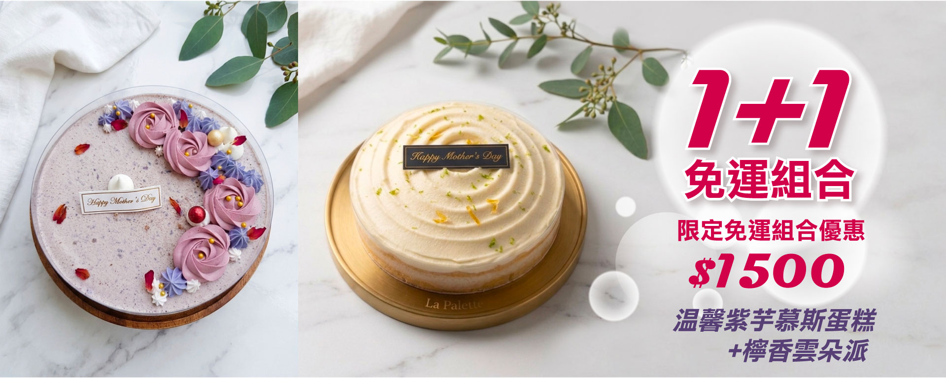 母親節1+1免運組合【溫馨紫芋慕斯蛋糕+檸香雲朵派】【低溫】
